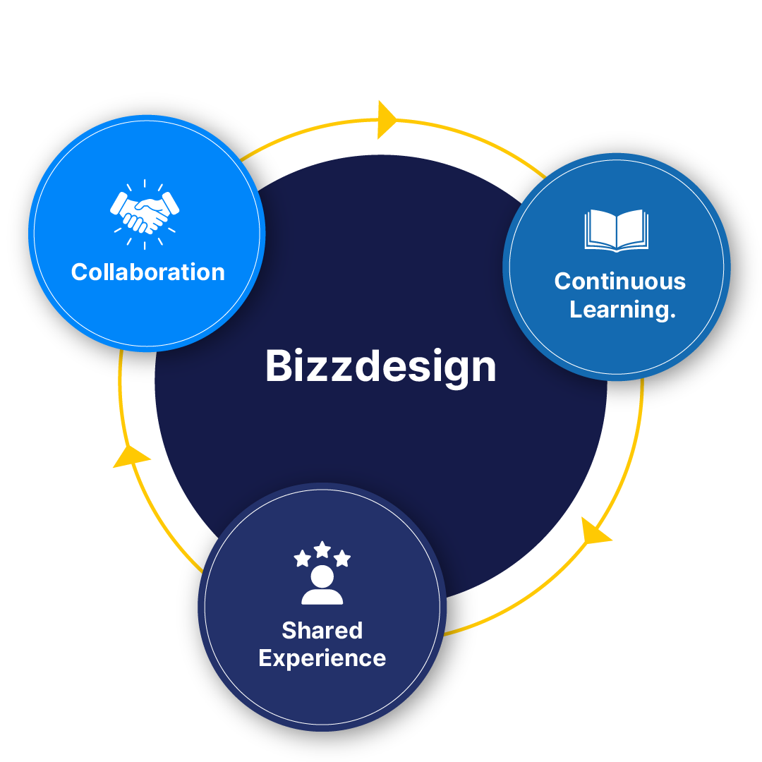 Bizzdesign sits at the center of the Circle as a connector. Our role is not to dominate the conversation, but to enable it: bringing the right people together, facilitating meaningful dialogue, and providing the frameworks, insights, and tools that help organizations move forward with confidence.